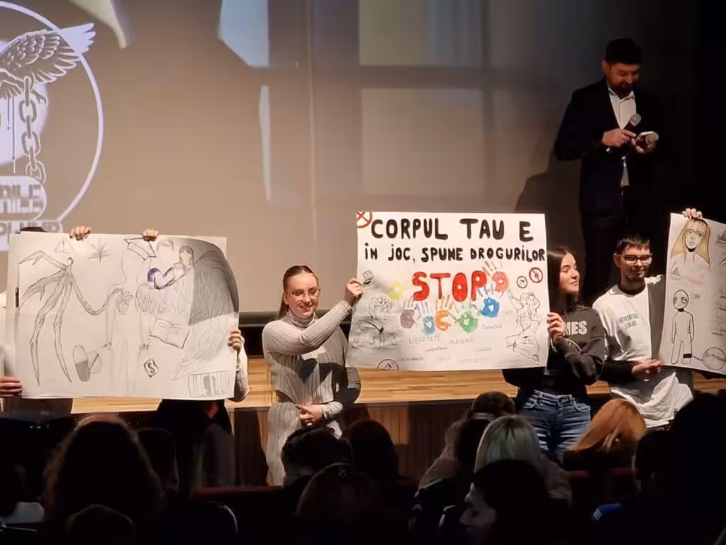 În final, elevii au fost provocați să creeze propriile mesaje antidrog – sub formă de afișe și sloganuri – devenind astfel parte activă în transmiterea mesajului campaniei.