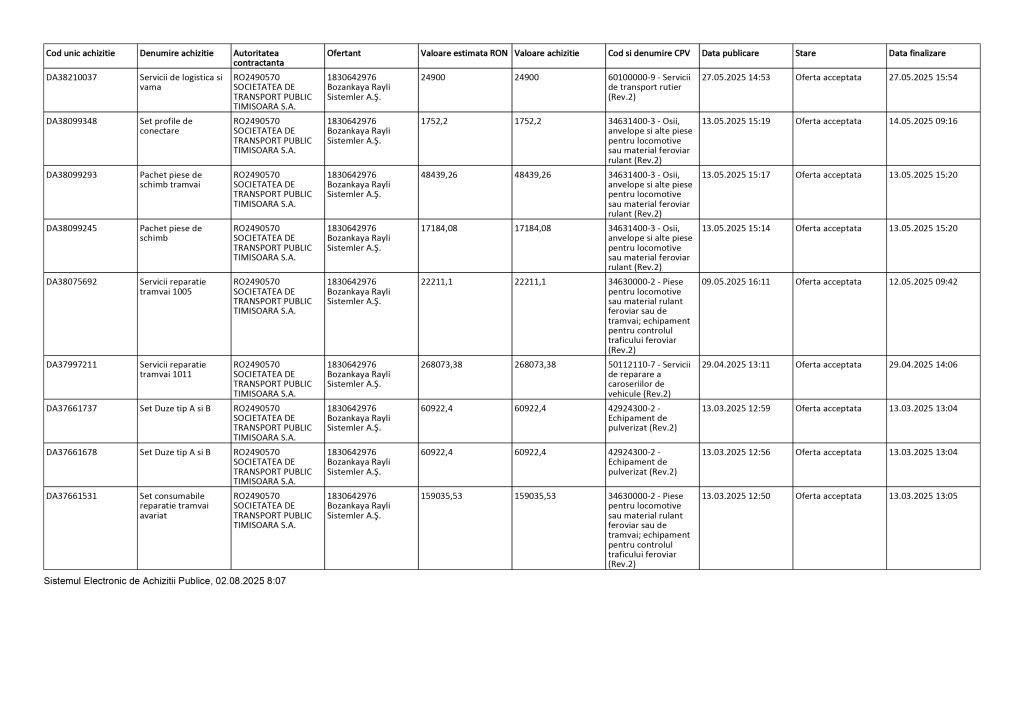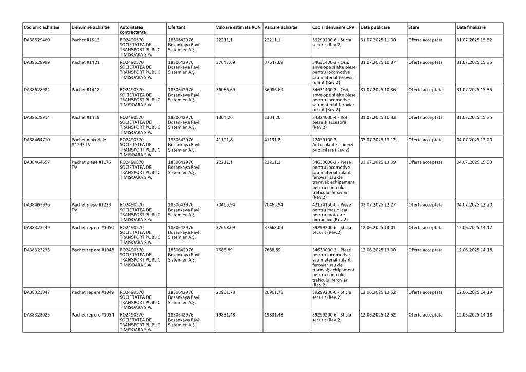 Documente oficiale consultate de Vocea Timișului arată că numai în ultimele luni întreținerea și reparațiile tramvaielor Bozankaya au costat aproape 980.709 lei – adică peste 197.000 de euro. Sume uriașe cheltuite pe sticlă securizată spartă, piese de schimb, consumabile și reparații inevitabile cauzate de infrastructura feroviară învechită, cu linii deformate și macaze defecte.