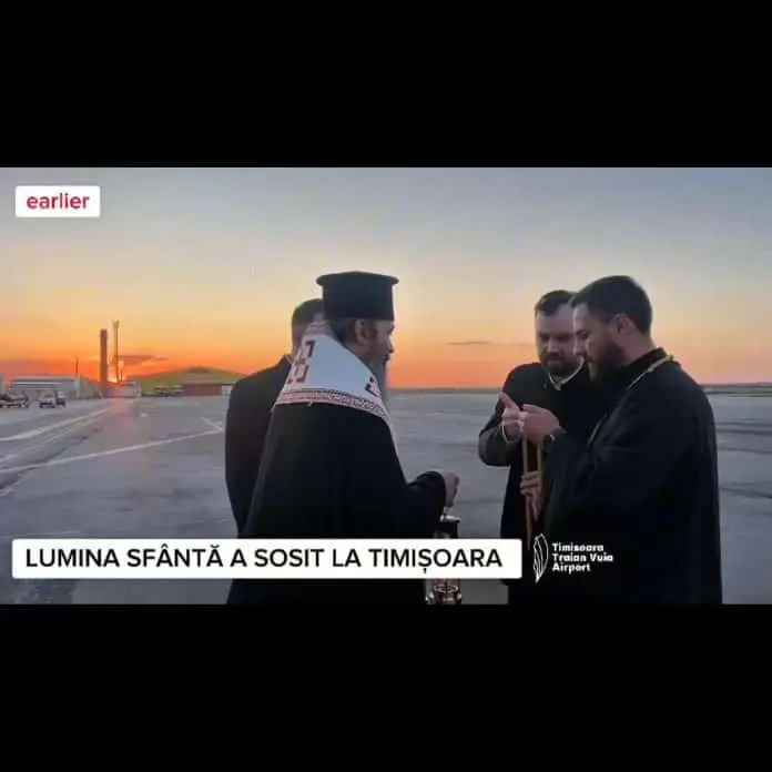 Lumina Sfântă de la Ierusalim a ajuns sâmbătă seara pe Aeroportul Internațional „Traian Vuia” din Timișoara, în ajunul marii sărbători a Învierii Domnului. Evenimentul a fost marcat de un moment solemn, în prezența reprezentanților Mitropoliei Banatului, a clericilor și a mai multor credincioși.