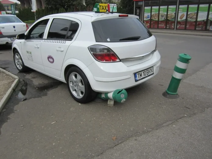 Imaginile au fost surprinse cu câteva zile în urmă, în stația de taxi de lângă Centrul Regional de Afaceri din Timișoara, acolo unde se găsește o stație de taxi, ca multe altele. Doar că această stație nu este ”delimitată”, sau altfel spus nu se specifică numărul mașinilor de taxi cărora le este permis să staționeze – nu că această specificație împiedică șoferii de taxi să stea în număr dublu într-o stație chiar dacă parchează pe trotuare, spații verzi și multe alte locuri ”ilegale”.