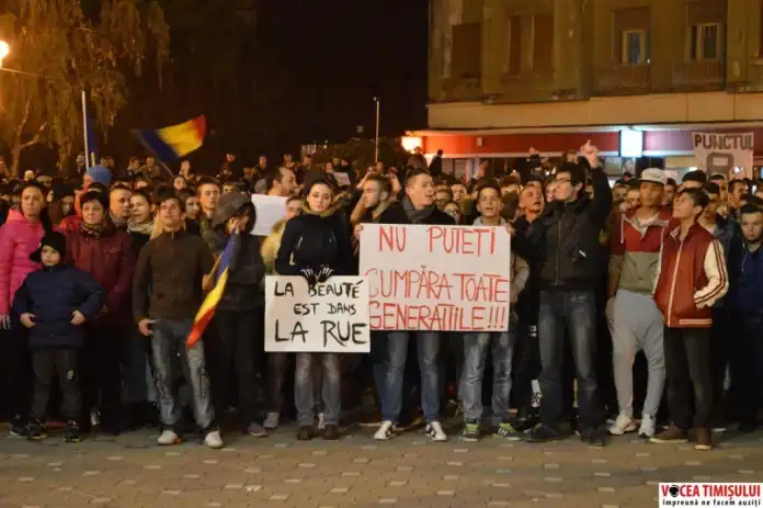 „Timișoara, Timișoara!”, „Azi în Timișoara, mâine-n toată țara”, „Vrem spitale, nu catedrale”, au fost doar câteva dintre multele lozinci scandate de protestatari și care au străpuns aerul rece, lăsat odată cu venirea serii. Mulțimea a început să crească în număr puțin după ora 18.00, atunci când, rând pe rând, sute de tineri soseau dinspre Complexul Studențesc, în fața balconului Operei din Timișoara, îmbrăcat cu un steag tricolor pe care scria „bunicii la război, părinții la revoluție, azi e rândul nostru!”. Joasa speță a politicienilor sau a acoliților acestora nu a putut să absenteze nici ieri seară, atunci când Beniamin Lup, inițiatorul mișcărilor de stradă a PNL-ului, a încercat să preia conducerea vocală a protestului.