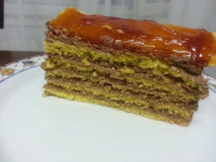 Blatul: se bat albuşurile spumă cu praful de sare apoi se adăugă zahărul treptat, când sunt bine bătute se adăugă câte unul gălbenuşurile şi la sfârşit faina amestecând uşor cu un tel.Se coc 6 foi subţiri pe dosul tăvii (sau câte vă ies depinde de tava) la 180 grade aproximativ 15 minute fiecare foaie.
